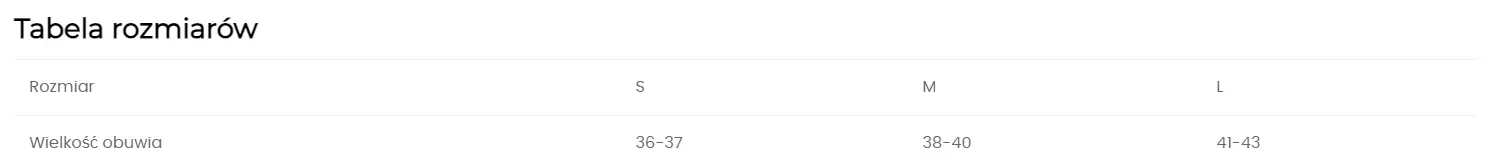• rozmiary S (36-37), M (38-40), L (41-43)