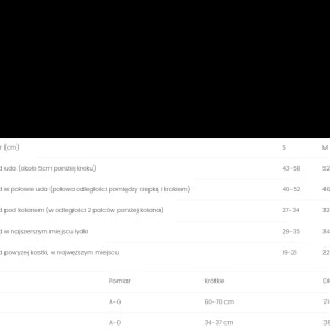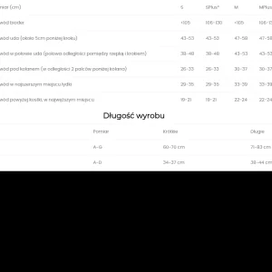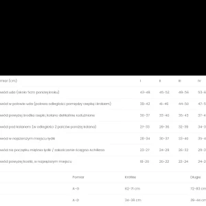 Dobór rozmiaru: W celu właściwego doboru rozmiaru, należy zmierzyć obwody nóg (lewej i prawej) w miejscach wskazanych w tabeli. Pomiaru należy dokonać rano, po nocnym odpoczynku.